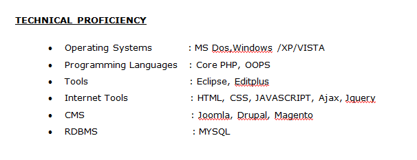 How to create Fresher PHP Resume Professional Format ... from 1.bp.blogspot.com With the rise of technology, the computer skills you have can set you apart when applying for a new job. Keep in mind, more resumes are eliminated because of lack of information rather than too much information. Resume for mca freshers, sample resumes and templates for mca freshers. Seeking a challenging and rewarding opportunity with an organization of repute which recognizes my true potential and effectively utilizes/nurtures my excellent analytical and technical skills in it industry software. But all of the recruiters will have one thing in common: There, you'd be less likely to name a specific skill than to show it — for example, you led a team project to successful completion. Meanwhile, adding technical writing skills in your resume can enhance your chances of getting recruited into your dream company. To bag these lucrative sales jobs, your resume should offer a high degree of.